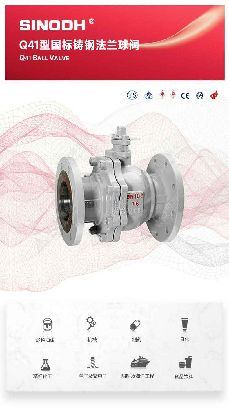 Q41型国标铸钢法兰球阀,为火博·体育-火博(中国)自主研发生产。本产品设计制造标准符合GB/T12237、GB/T12224标准。该产品的球体在介质压力作用下球体能产生一定的位移并紧压在出口端的密封面上,保证出口端密封。适用于水、溶剂、酸和天然气等一般工业介质也适用于工况恶劣的介质,如氧气、过氧化氢、甲烷和乙烯等介质。